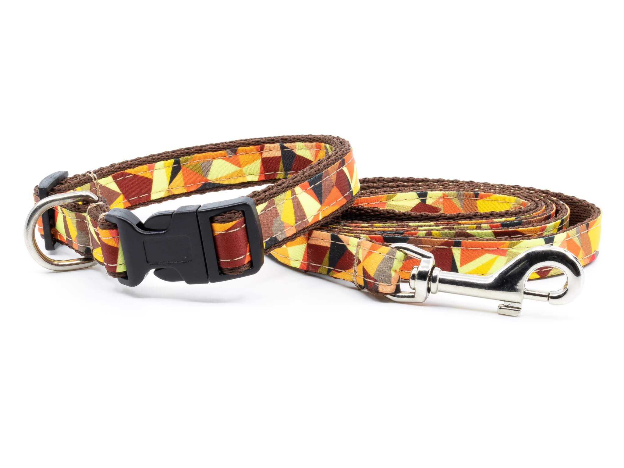Set obojku a vodítka pro psa ve veselém art vzoru. Vyrobeno z pevných funkčních materiálů. K dostání ve velikostech ideálních pro střední a velká plemena pejsků. Samozřejmostí je nastavitelná velikost obojku, který lze uvolnit či utáhnout pomocí plastové karabiny. Pro přichycení vodítka k obojku slouží kovová karabina na vodítku.