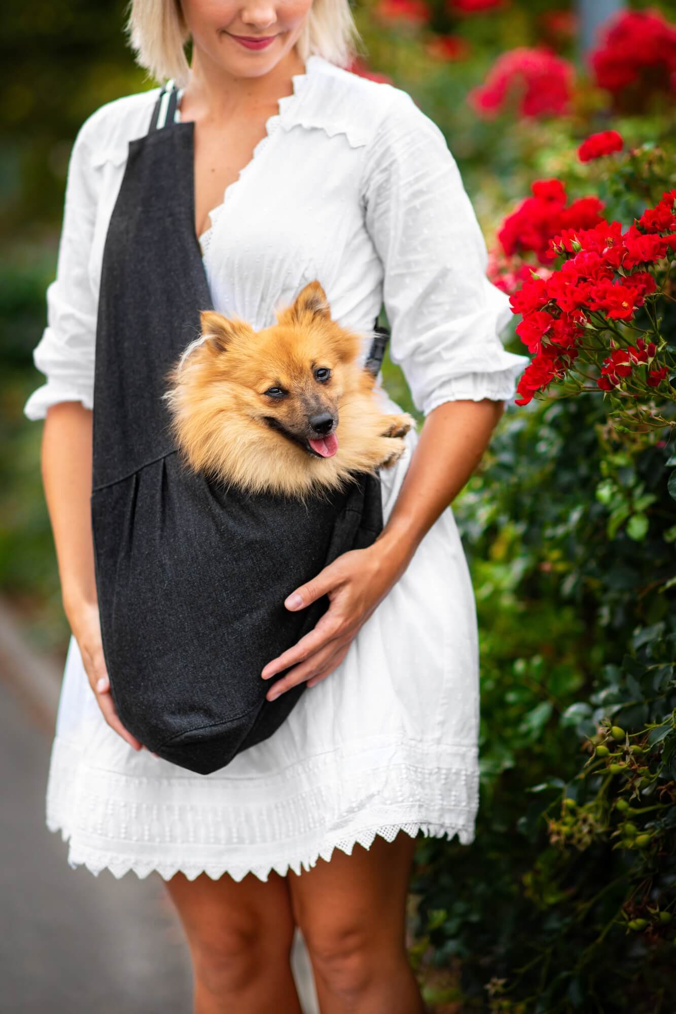 - Přizpůsobte hmotnost: Jelikož je štěně lehčí, možná budete muset přizpůsobit nastavení popruhů tašky, aby dobře seděla na vašem těle a byla stabilní.
